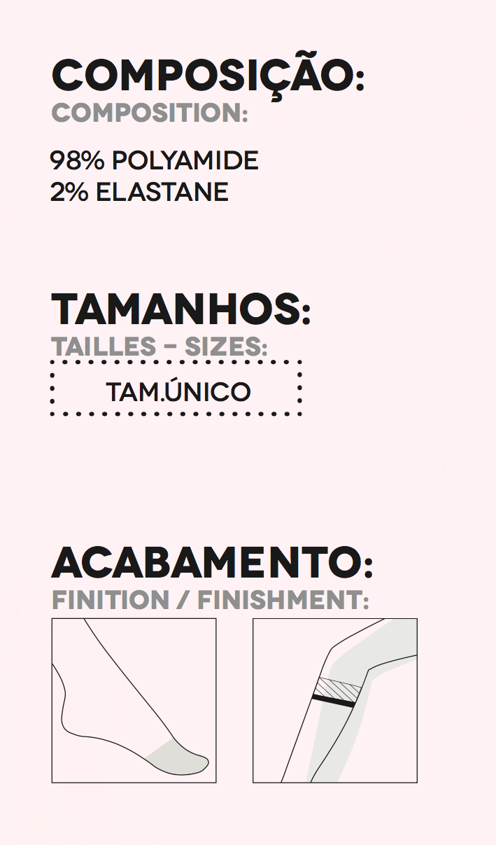 Mini Meia Semi-Transparente, aspecto 20 Deniers. Acabamento com punho comfort anti-press, não prejudica a circulação. CONTEM 2 PARES